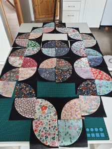 Enn sem komið er bíður það svo eftir að verða klárað (border/bak/quilt) en ég hef jafnvel verið að spá í að nýta einhvert af skrautsporunum á saumavélinni minni til að skreyta það aðeins þar sem mér finnst að stundum vanta eitthvað meira.