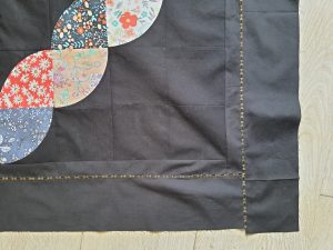 Ég ákvað líka að bæta aðeins við og setti "border" í sama svarta litnum og notaði svo ósýnilegt spor til að sauma það á.  Þetta kemur vel út að mestu en ég er þó enn að gera það upp við mig hvort ég þurfi ekki að hafa hornin eitthvað öðruvísi.   Það kemur í ljós síðar.....