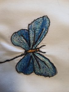 Um eftirmiðdag í gær ákvað ég að spreyta mig í því sem á enskunni kallast Thread painting.  Samkvæmt YouTube myndbandi sem ég vafraði á um daginn þá er þetta nefnilega ágætis æfing í því að nota “Free-motion” tæknina en það er einmitt það sem ég er að æfa mig í undanfarið.