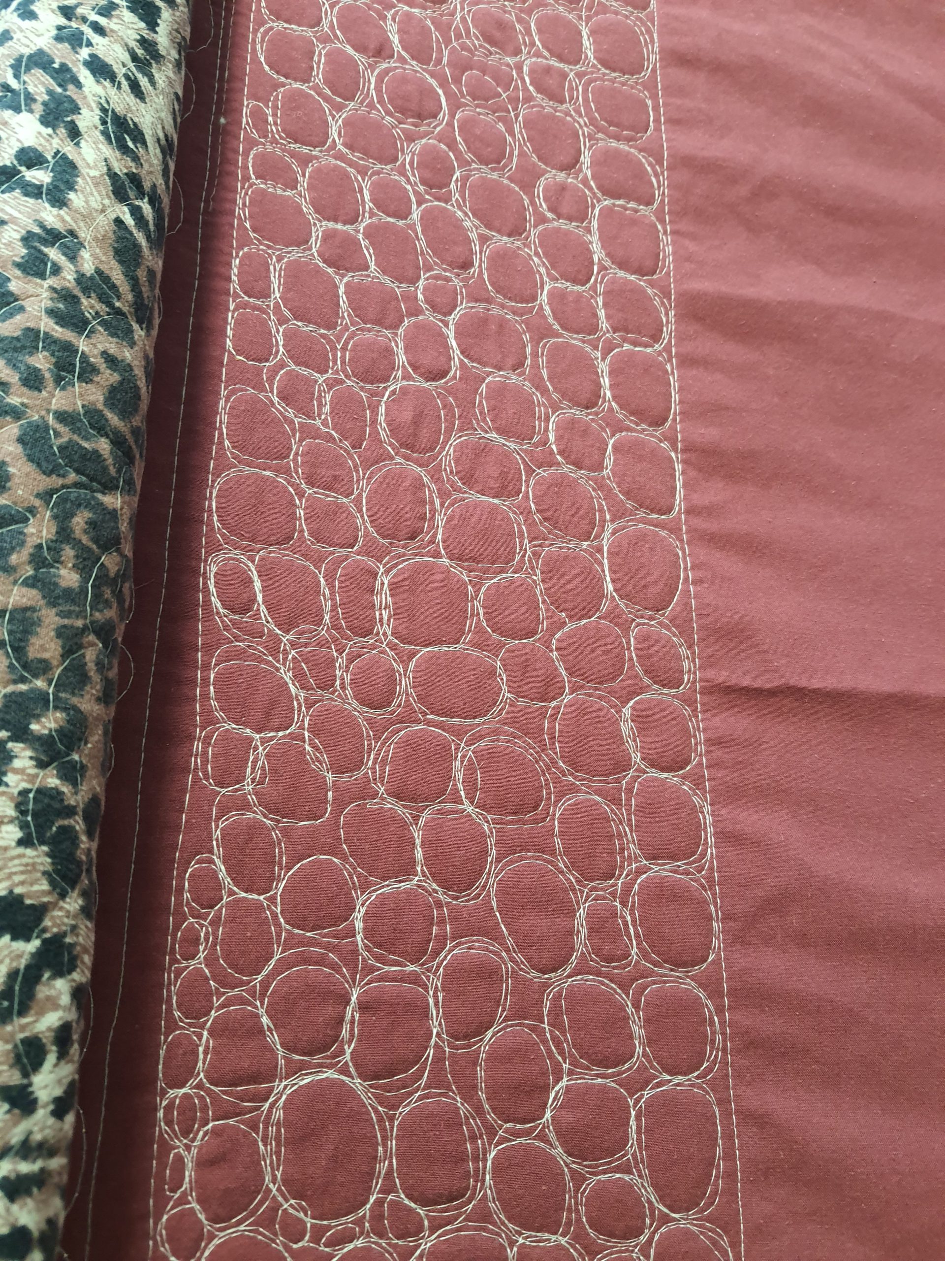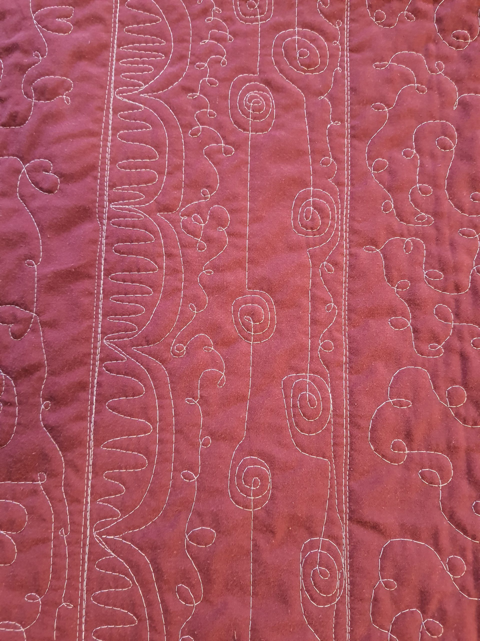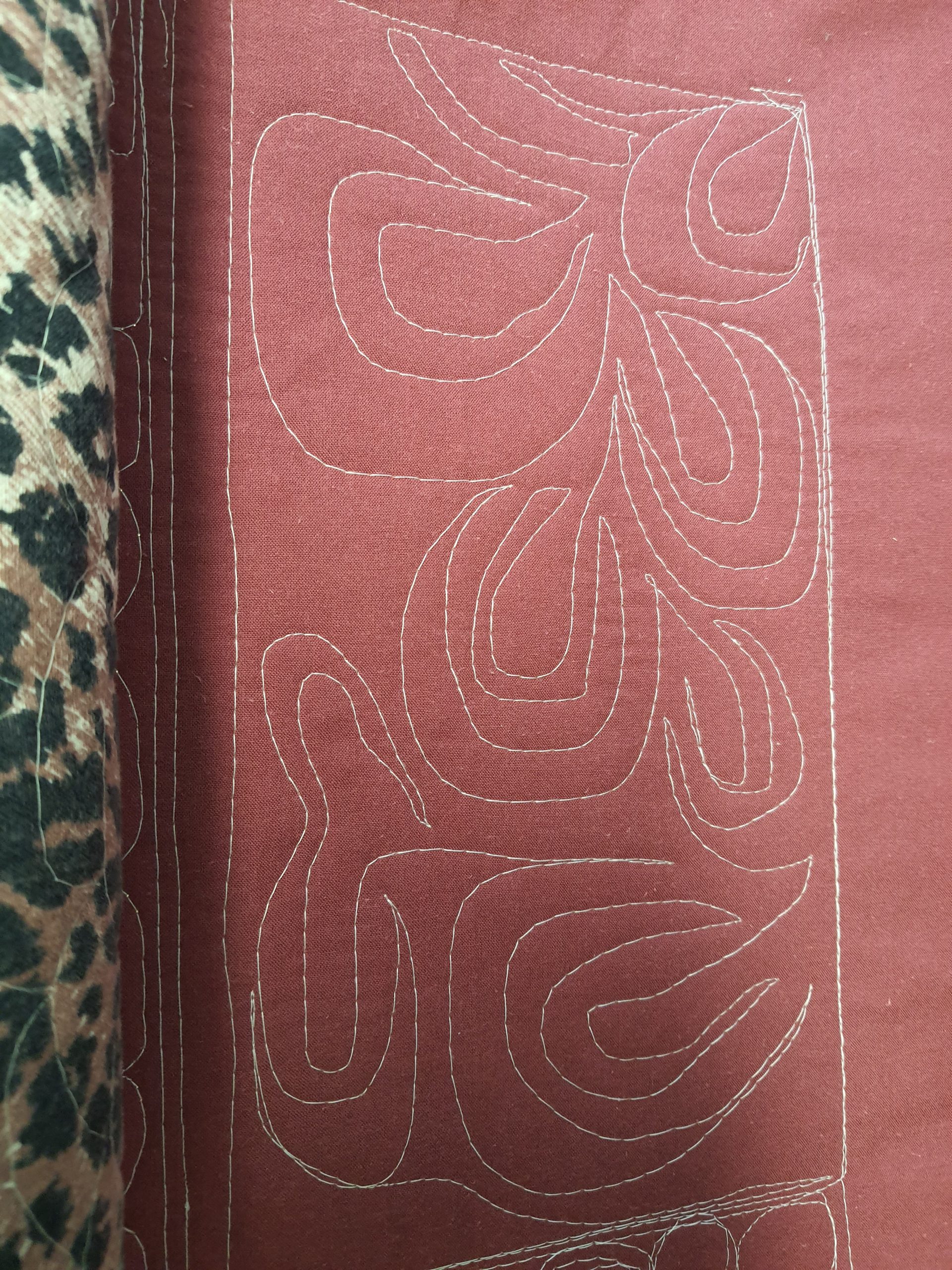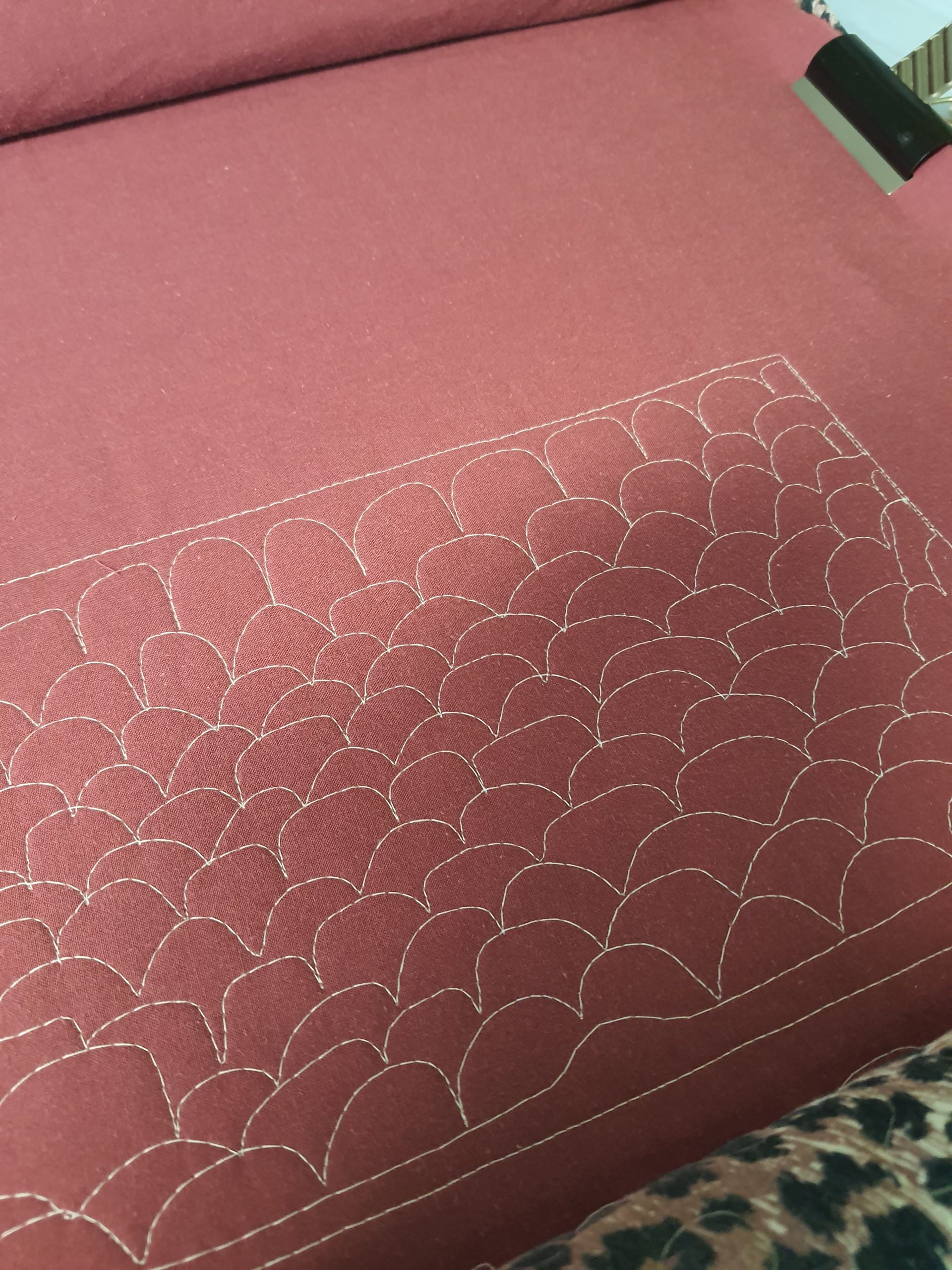 Fyrir þá sem eru ekki í bútasaumi, þá er þetta græja til að “quilta”… þ.e.a.s. að festa saman lögin þrjú sem gera teppið, topp (þetta sem ég hef verið að sauma), millilag og bakstykki…. Í þetta “samsaum” má svo gera allskonar mynstur og dúllerí.