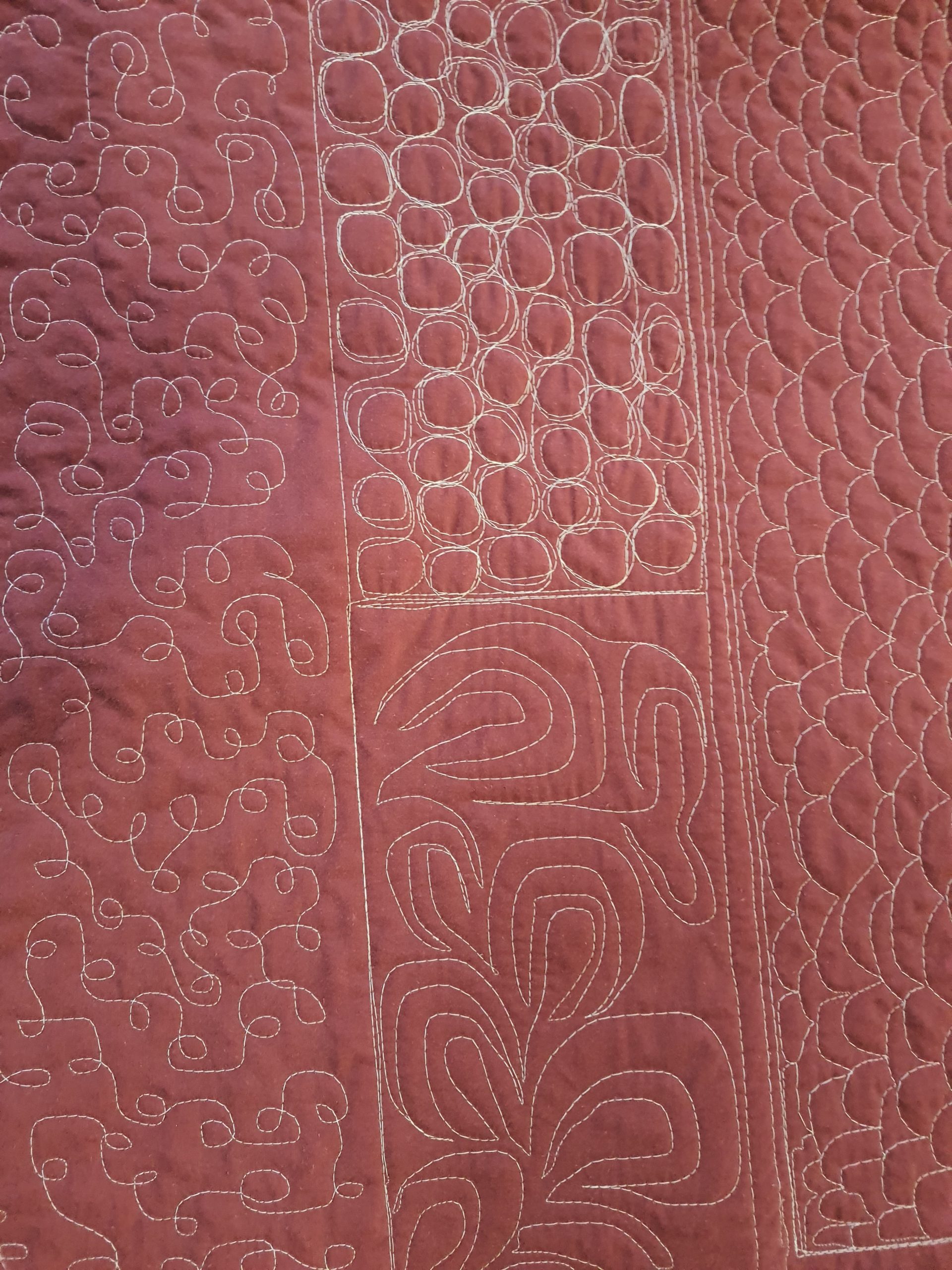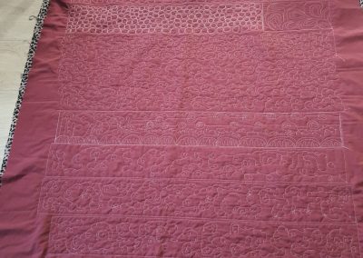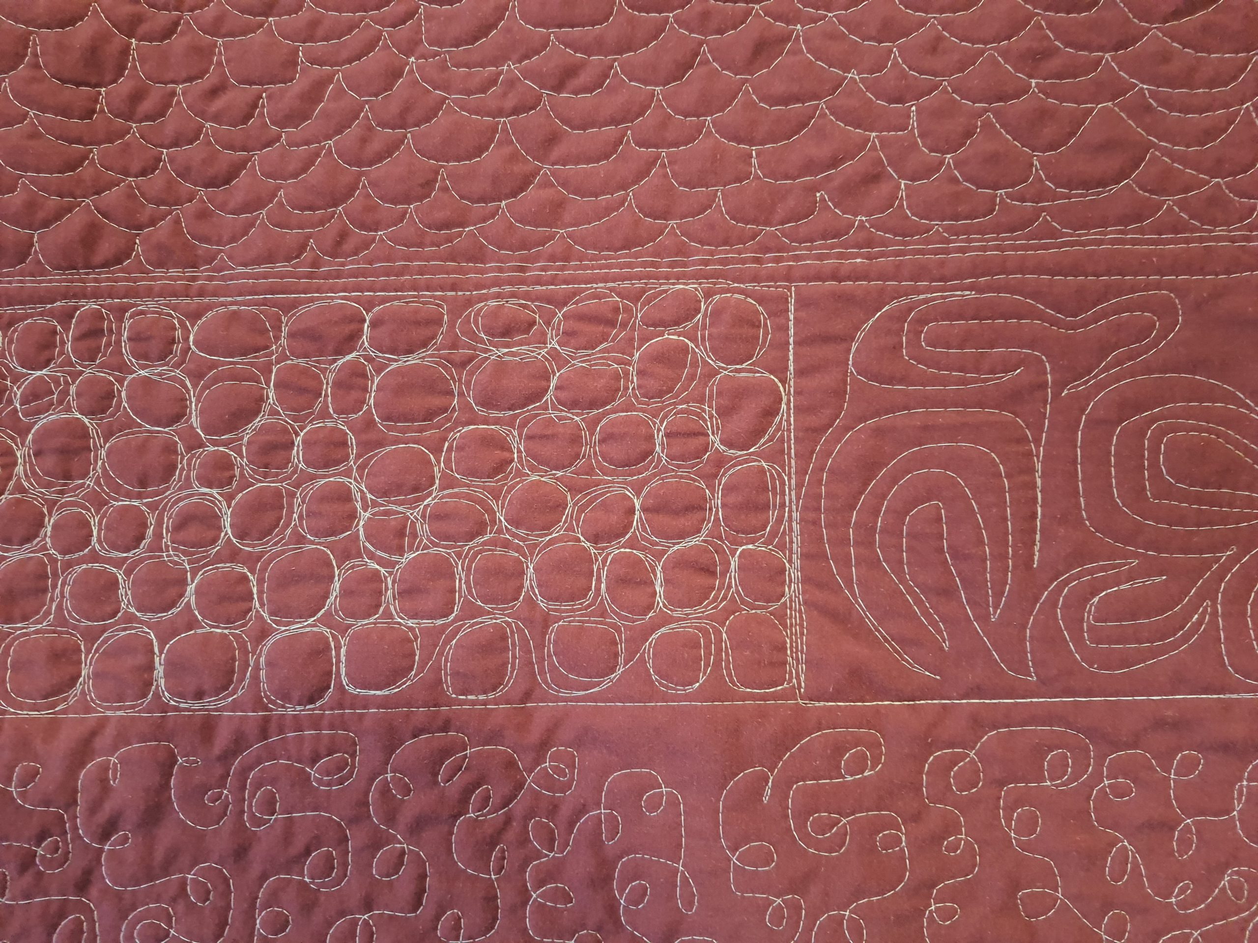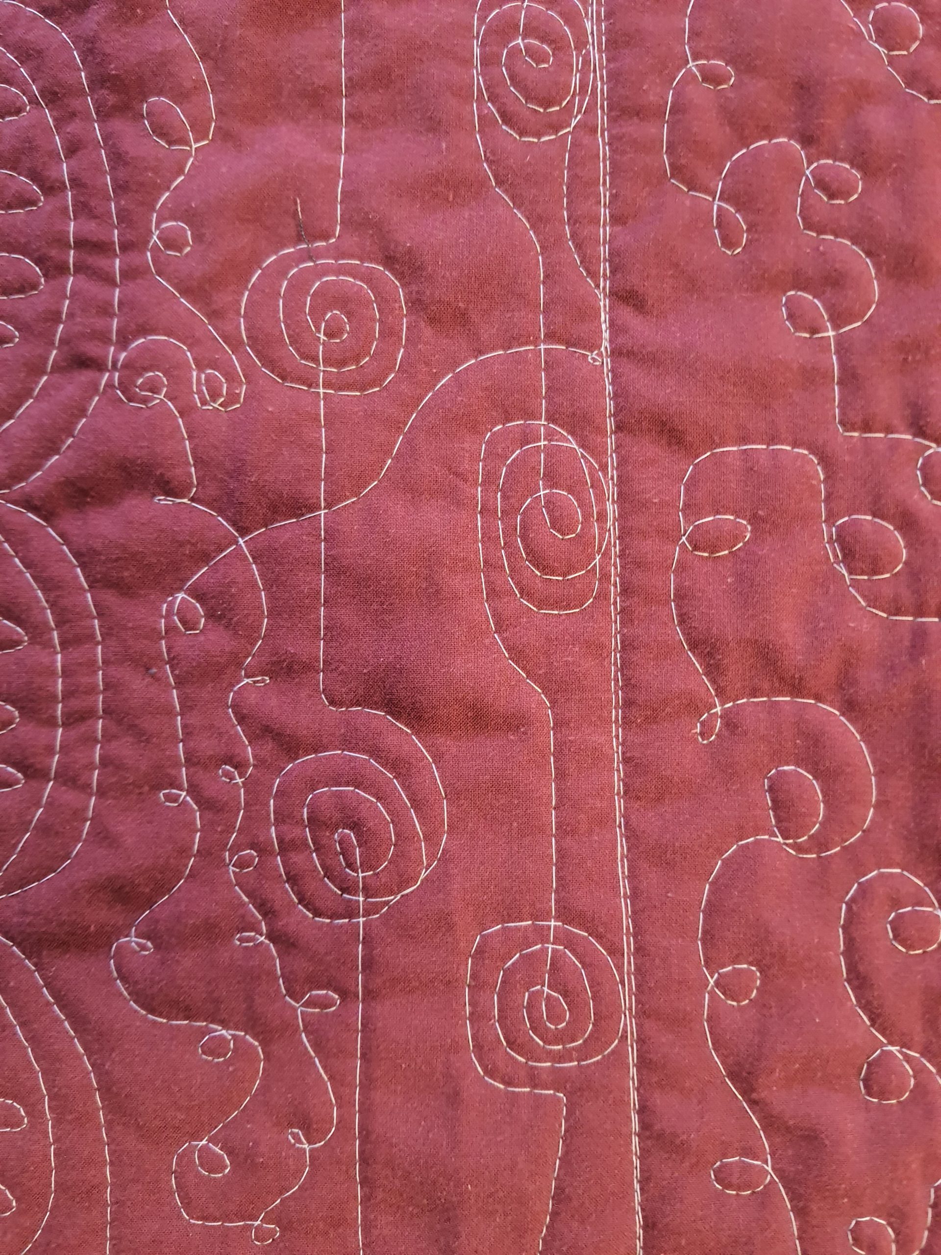 Fyrir þá sem eru ekki í bútasaumi, þá er þetta græja til að “quilta”… þ.e.a.s. að festa saman lögin þrjú sem gera teppið, topp (þetta sem ég hef verið að sauma), millilag og bakstykki…. Í þetta “samsaum” má svo gera allskonar mynstur og dúllerí.