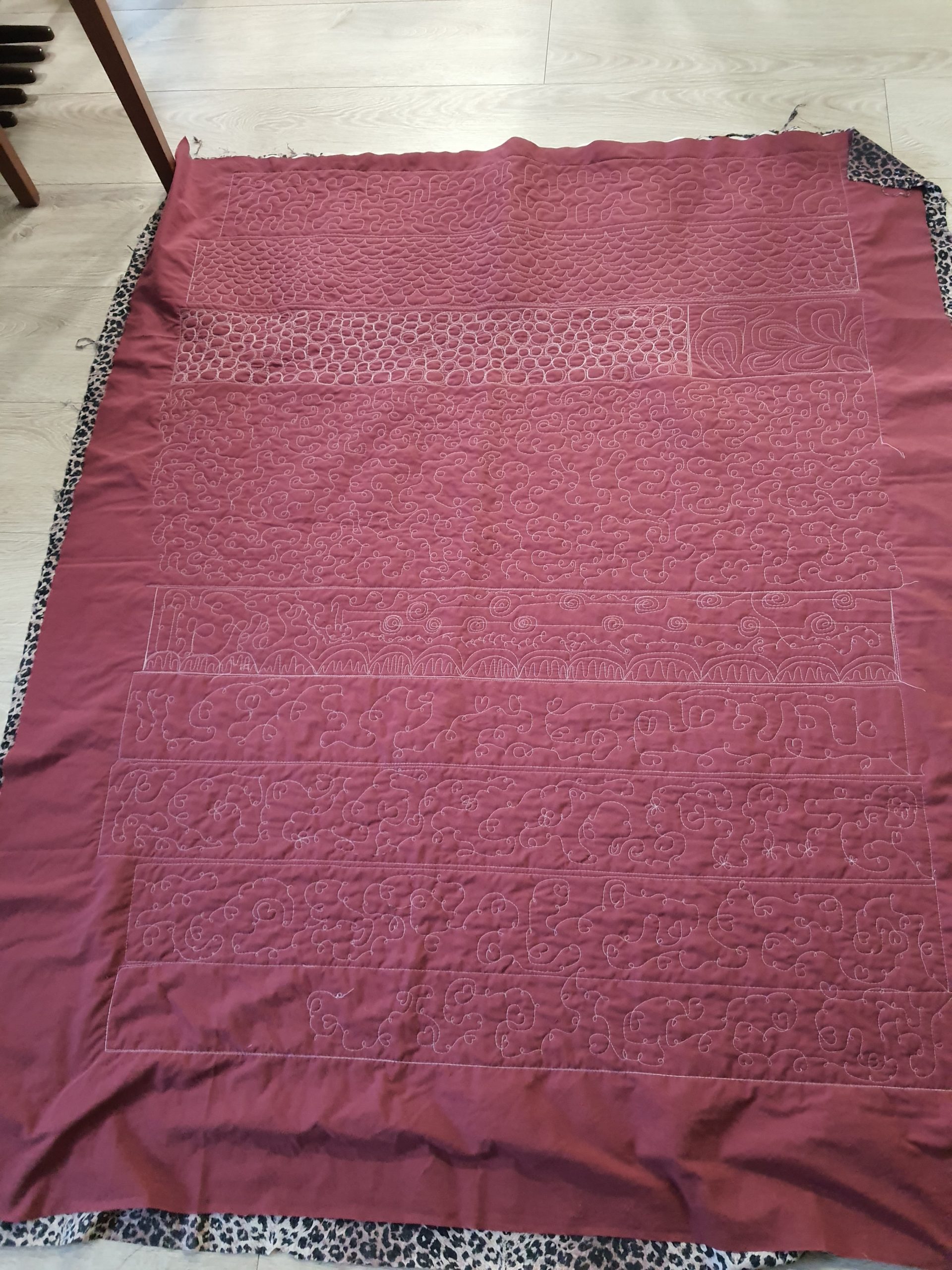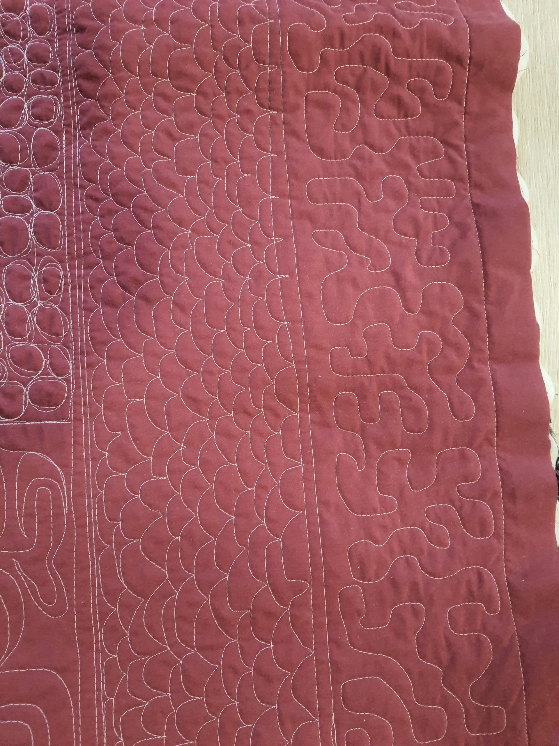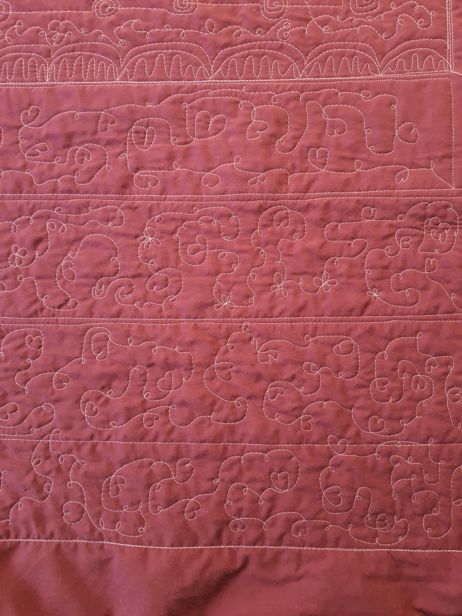Já, nú er ég aldeilis komin með nýtt dót! Það var fyrir nokkru síðan sem ég sá auglýsingu á Fésbók, þar sem kona ein var að auglýsa draumadótið mitt. Ég kannaðist aðeins við konuna, eða a.m.k. ættina, en hún er nú bara frænka eiginmannsins míns. Ég var búin að vera að skoða þann möguleika að fá manninn minn til að smíða mér einhverskonar svipaða græju en þar sem quilt topparnir hafa hlaðist upp. Eiginmaðurinn hefur reyndar alveg nóg á sinni könnu og ég hefði örugglega átt fjall af toppum áður en heimasmíðuð græja hefði litið dagsins ljós. Því var bara ákveðið að fjárfesta í henni tilbúinni til notkunar og …. ég held svei mér þá…. hún virkar! Svo fylgdi henni líka saumavél sem er algjör vinnu hestur og hún gerir margt sem mín ljómandi fína Pfaff á í vandræðum með….